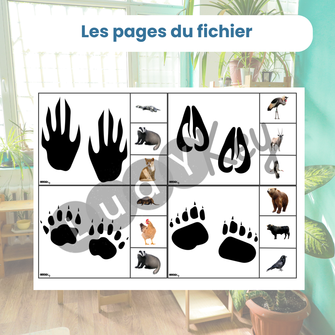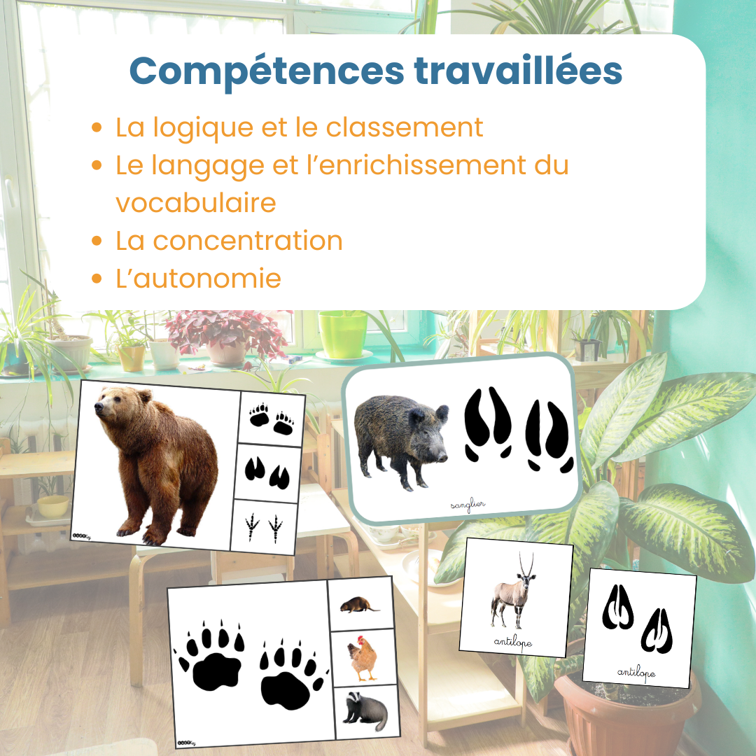 Avec ce jeu éducatif empreintes animaux, l’enfant :