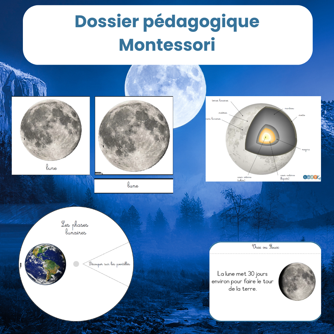 >> 54 pages formant un dossier pédagogique Montessori sur la lune <<